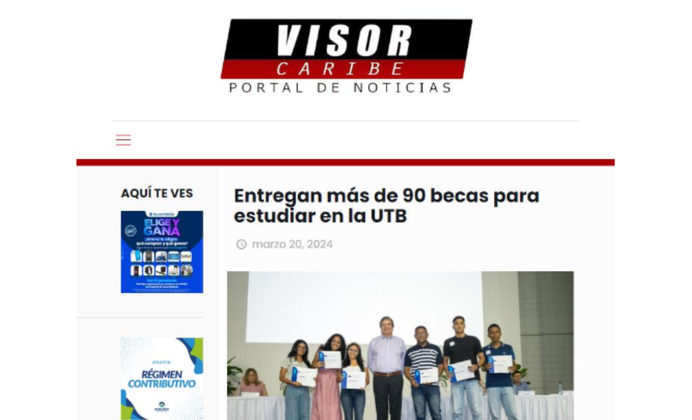 En el Auditorio Napoleón de la Rosa Echávez se llevó a cabo la ceremonia de entrega de becas de la primera convocatoria Vamos Pa´ Lante Estudiantes, realizada a finales del 2023 por la UTB. Esta iniciativa logró, a través de donaciones, que más de 80 estudiantes con necesidades financieras puedan iniciar o continuar sus estudios