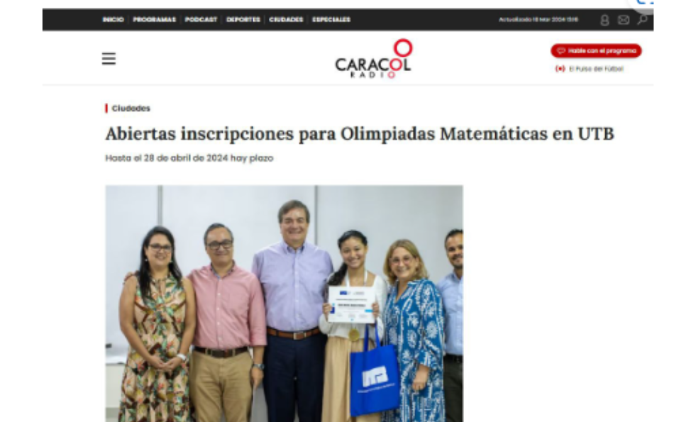 Abiertas inscripciones para Olimpiadas Matemáticas en UTB Leer más »