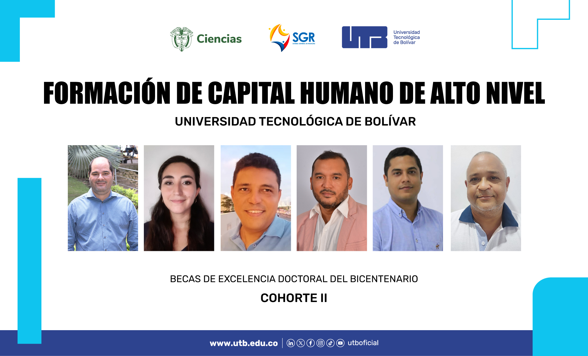 La Universidad Tecnológica de Bolívar se encuentra desde el 27 de julio de 2021, ejecutando el proyecto titulado «FORTALECIMIENTO DE CAPITAL HUMANO DE ALTO NIVEL EN LA UNIVERSIDAD TECNOLÓGICA DE BOLÍVAR A NIVEL NACIONAL», identificado con el código bpin 2021000100033. En el marco de las Becas del Bicentenario cohorte II de Colciencias, este programa se centra en brindar formación doctoral a seis estudiantes con aspiraciones de obtener el título de doctor en ingeniería de la UTB. La iniciativa tiene como objetivo primordial potenciar las capacidades del talento humano en investigaciones de alta calidad y significativo impacto. La obtención de financiamiento para seis propuestas de tesis doctorales, vinculadas al programa de doctorado en Ingeniería de la UTB, marca un hito importante. Estas propuestas no solo serán desarrolladas integralmente, sino que también se proyecta que generarán un impacto relevante en cinco departamentos del país, consolidando así el compromiso de la UTB con la excelencia académica y la contribución al avance científico a nivel nacional.