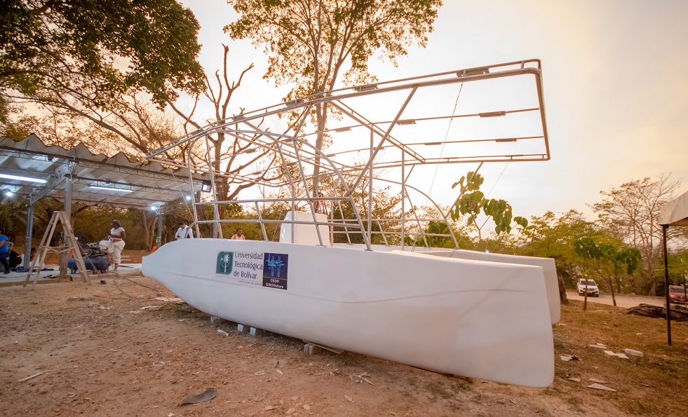 Esta nueva solución de transporte sostenible fue diseñada y producida por el grupo de investigación en Ingeniería Naval y Offshore-CEoff (GINO) asociado al programa de Ingeniería Naval y la maestría en Ingeniería Naval y Oceánica junto a los programas de Ingeniería Eléctrica, Mecánica y Mecatrónica de la Facultad de Ingeniería de la UTB, se desarrolló en alianza con el Grupo Empresarial Ecopetrol y contó con el apoyo de empresas como Celsia, Astivik y Agua&Tierra.