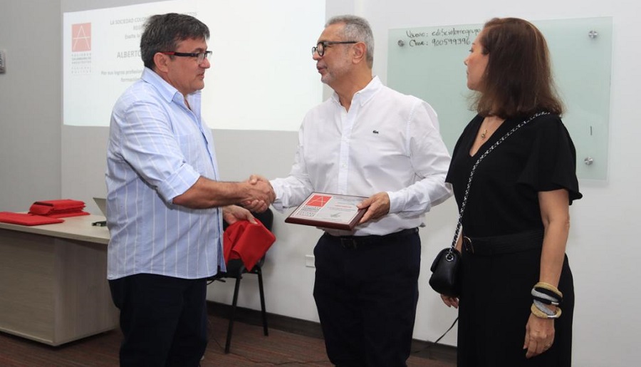 Durante el acto de premiación del Arquitecto del Año, la Sociedad Colombiana de Arquitectos de Bolívar hizo reconocimiento al decano de la Facultad de Arquitectura de la UTB, Alberto José Herrera Díaz.