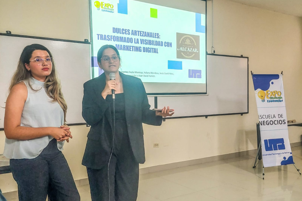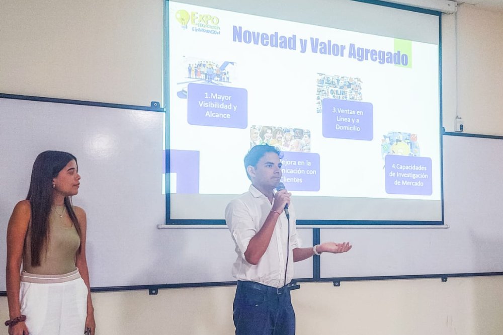 En la quinta versión del Coloquio Expo Tecnología e Innovación: Diseño de Soluciones Aplicando Tecnologías Digitales, evento organizado por la profesora de la Escuela de Negocios: Oriana Susana Martínez Palomino, los estudiantes del curso Innovación del programa de  Administración de Empresas, presentaron prototipos digitales desarrollados como propuesta de mejora para favorecer la optimización tecnológica en mipymes localizadas en la ciudad de Cartagena,  a partir del estudio de la situación del sector y actividad económica de la empresa y las tendencias globales del mercado.