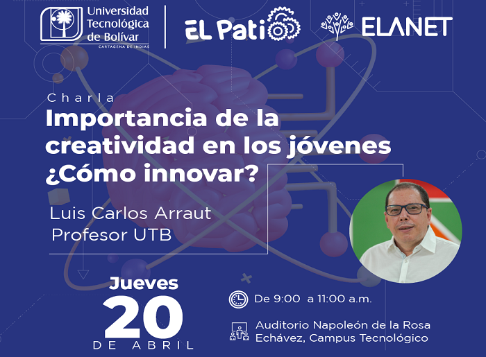 Agéndate con la UTB Entérate y participa en los eventos académicosde la Universidad Tecnológica de Bolívar Seleccione la categoría Abril 28 La reforma laboral y su impacto en el empleo Ver más Abril 25 La pandemia y las brechas en la educación Ver más 7, 8 y 9 junio I Encuentro Internacional de Negocios Verdes Cartagena 2023 Ver más Abril 20 Importancia de la creatividad en los jóvenes ¿Cómo innovar? Ver más Abril 21 Rally de Innovación UTB Ver más Marzo 16 Webinar: Internacionalización y buenas prácticas en zonas francas Ver más Ver más eventos