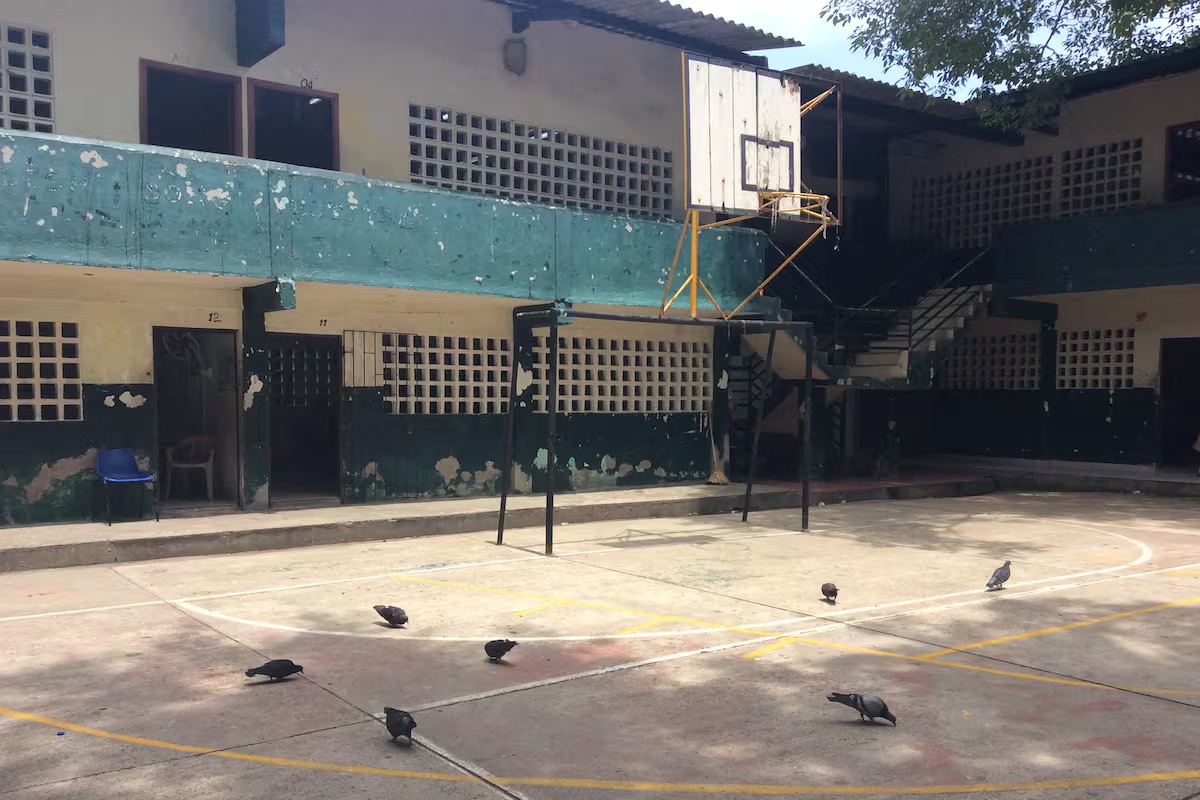El espacio de la cancha que no tiene mallas, un el tablero de baloncesto en mal estado, es aprovechado por las palomas. //Foto Cortesía Isaac Duarte