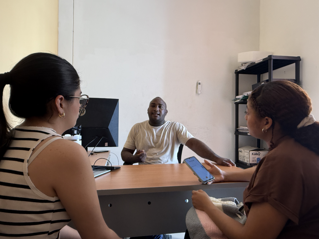 Antes de llegar hasta él, hubo voces que nos abrieron camino. Nuestra llegada a María la Baja no fue casual. Fue el eco de una conversación previa, sostenida con quienes también creen en la palabra como semilla. En las oficinas frescas de la Universidad Tecnológica de Bolívar, escuchamos a Jessica Blanco, una mujer que habla con la claridad de quien conoce el territorio no desde el escritorio, sino desde la experiencia.