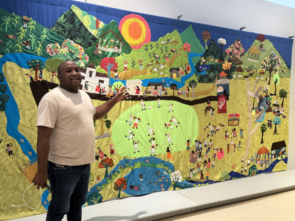 Ahora, muchos años después, vive en el nuevo Mampuján, trabaja como secretario del Museo de Arte y Memoria, y guías recorridos donde la historia se cose sobre tela. “El museo para mí es el lugar donde Dios me permitió sanar”, nos dijo con la voz quebrada y el alma abierta. Porque aquí la historia no se encierra en vitrinas. Se toca, se canta, se llora y se transforma en arte.