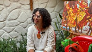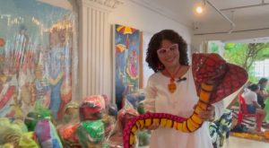Mientras nos mostraba cada una de sus obras, que estaban colgadas en la sala de su casa, entendimos que su arte es un viaje que se inicia en la creación de elementos escultóricos, cuyas formas cobran vida con la maestría de sus manos, y se concretan hasta la confección y diseños de pinturas, atuendos que visten cuerpos de niños hasta adultos mayores. Para Maritza, el maquillaje corporal también es un elemento principal que se convierte en un lienzo donde las historias y los colores se entrelazan. Así mismo, la música y las danzas representan una coreografía contagiosa y encantadora.