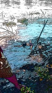 Ante sus ojos, estaba el cuerpo de quien fuera alguna vez una joven, de unos 17 o 18 años. Era delgada, tenía el cabello largo y la tez muy blanca. En su cuerpo se observaban múltiples signos de tortura. Alberto, con el cuidado que lo caracterizaba, decidió amarrarla a un lado de la canoa y comenzó a remar en dirección al pueblo.